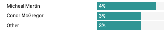 - McGregor polled at 3% in The Ipsos/ Irish Times poll in July, just above "Other" and 15 percentage points below "none of the names so far appeal to me"